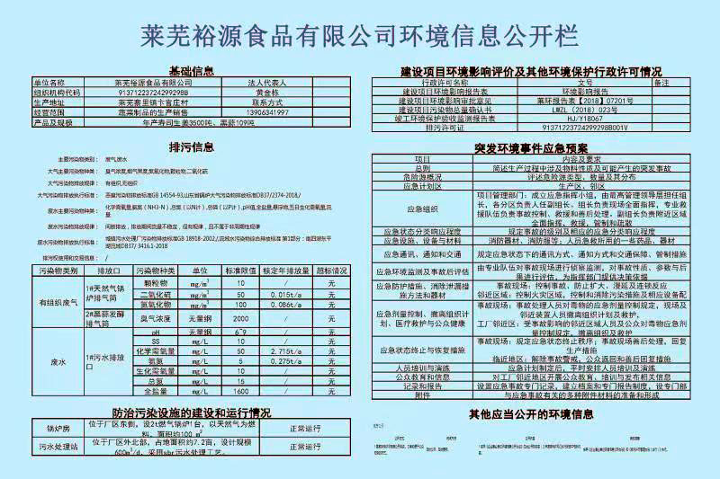 萊蕪裕源食品有限公司環(huán)境信息公開(kāi)欄